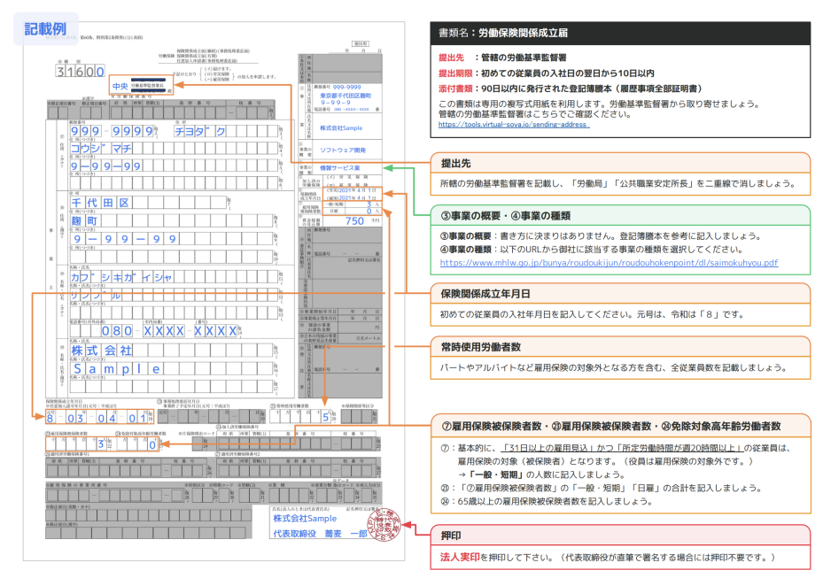 記入例に沿って埋めるだけで、面倒な書類もあっという間に完成。