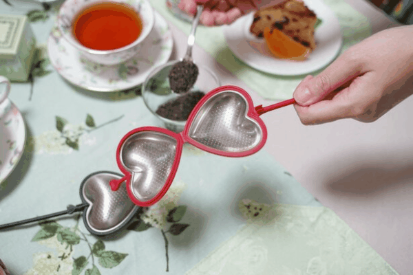 ハート部分に茶葉を入れてお湯に浸してお茶を抽出します。