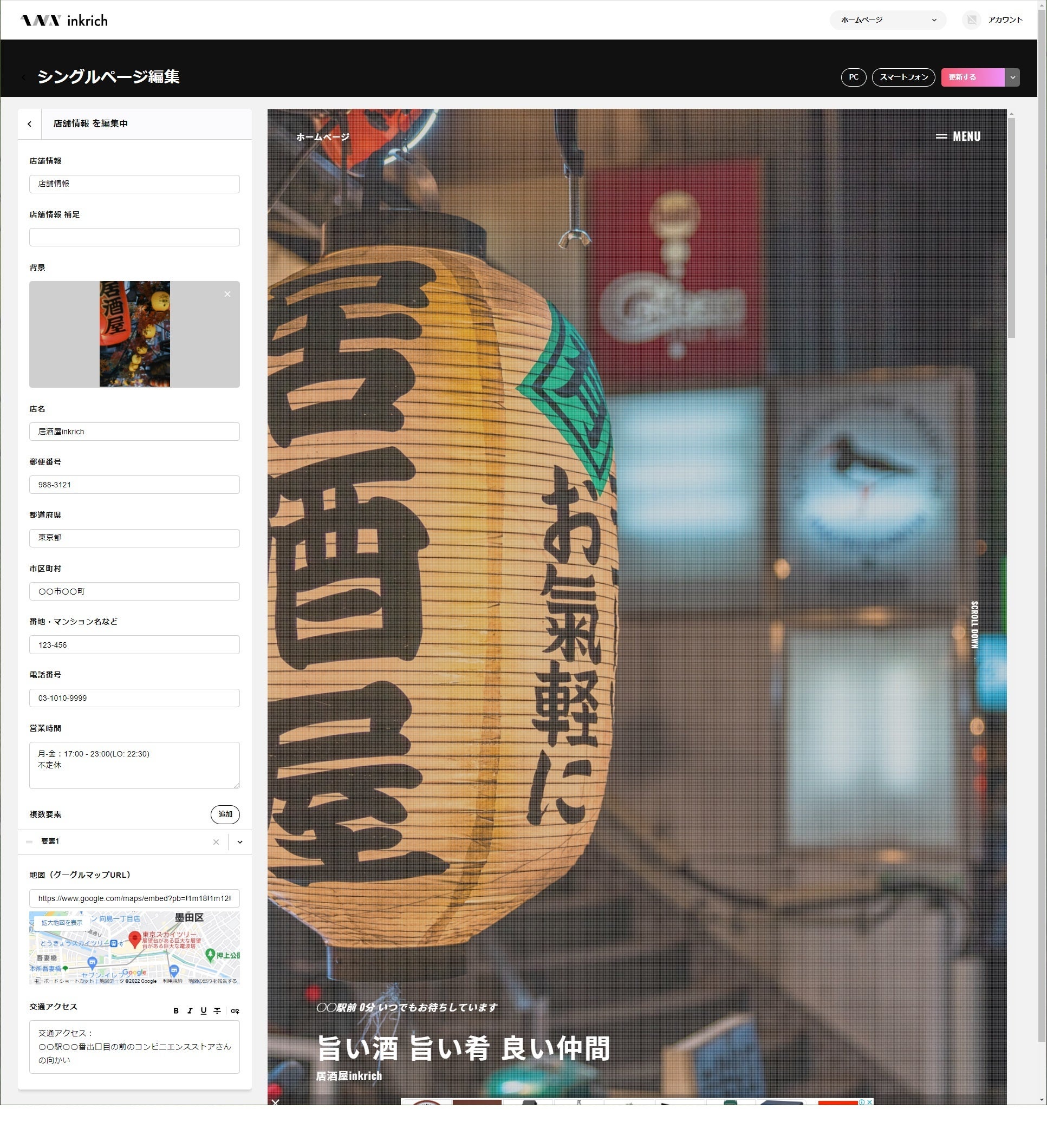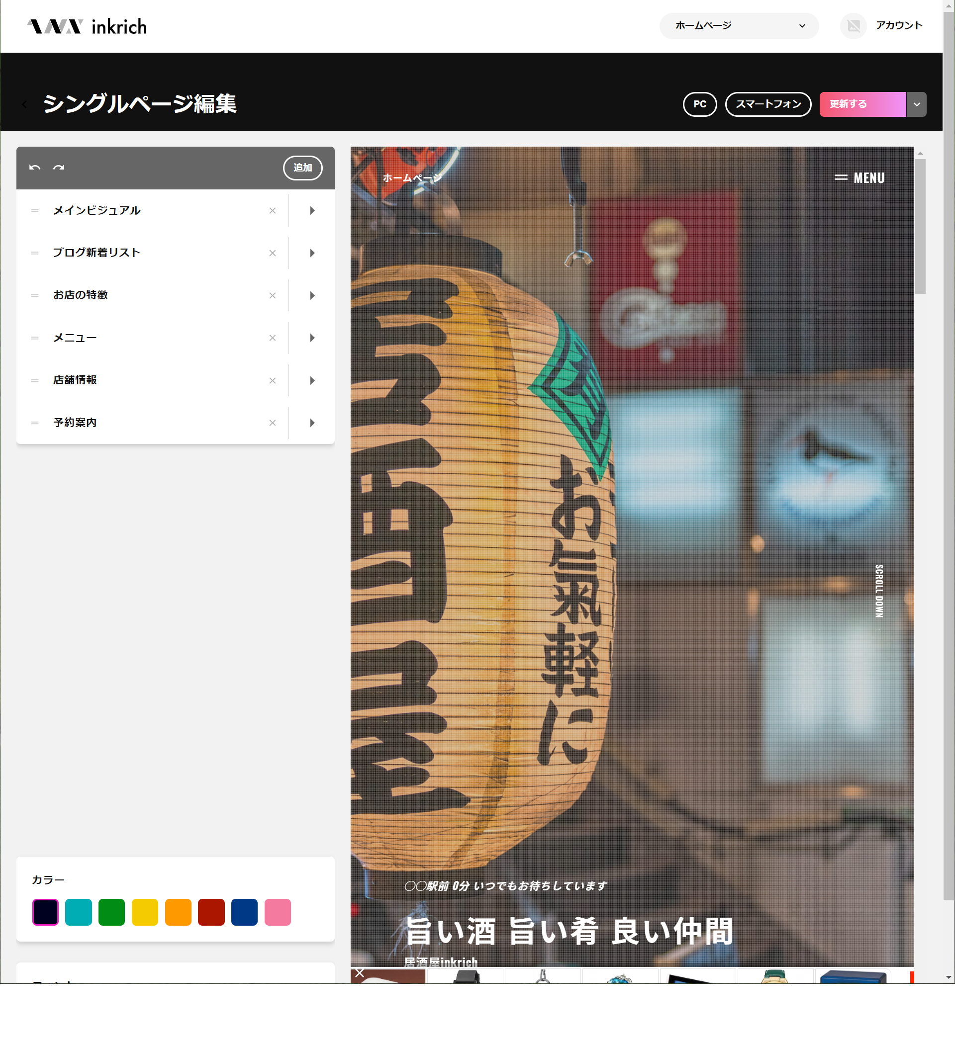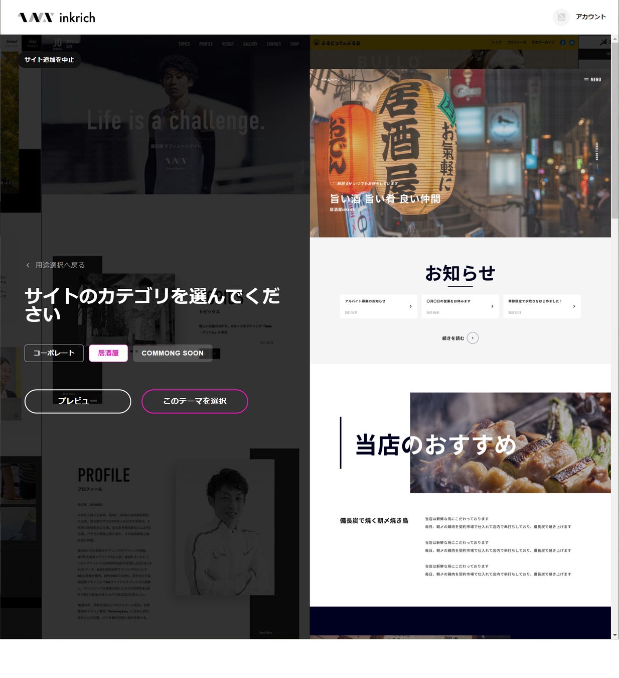 ホームページ作成サービスの「inkrich(インクリッチ)」が「居酒屋」テンプレートを提供開始