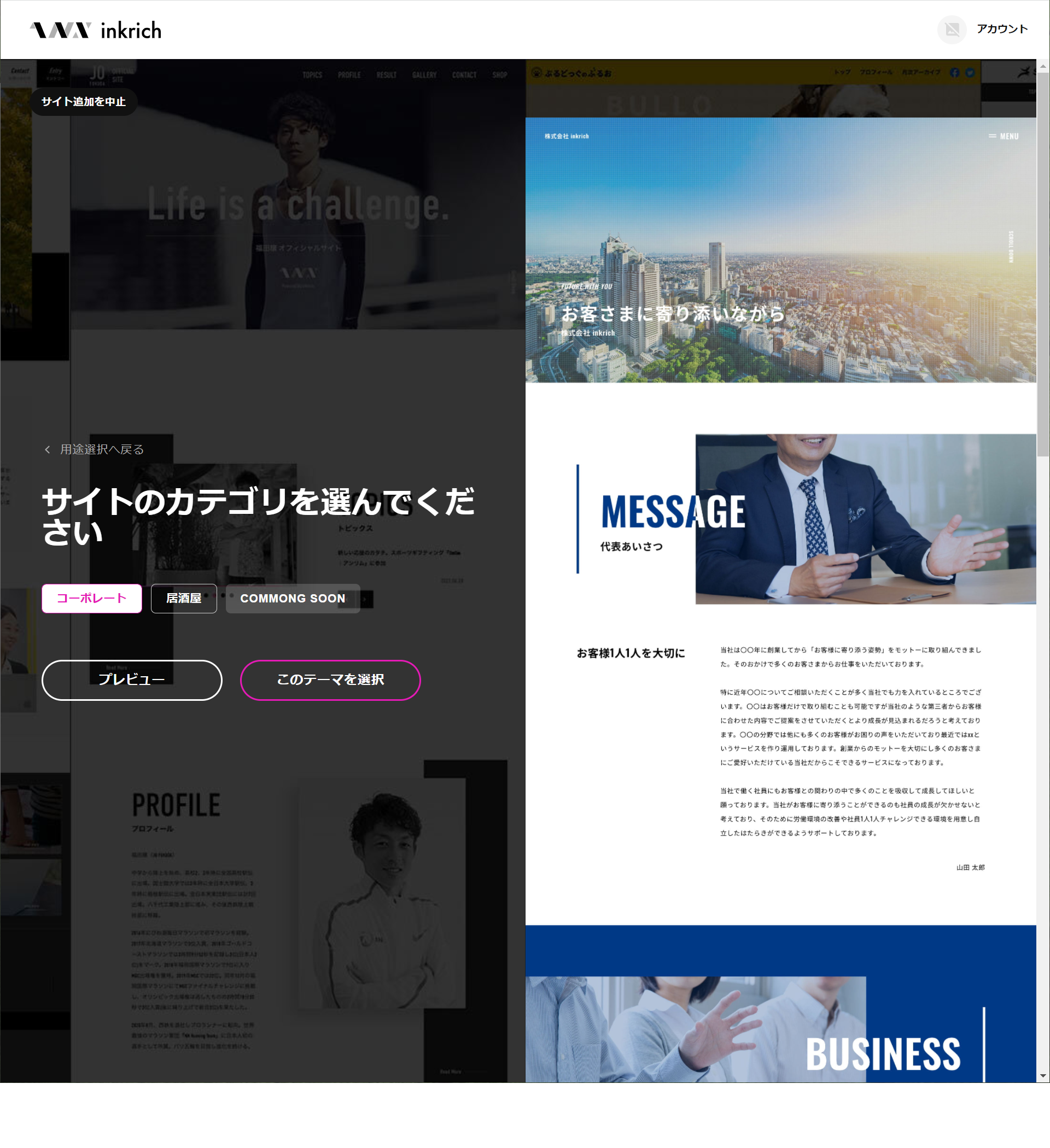 inkrich(インクリッチ)のコーポレートテンプレートは、さまざまな事業者のホームページ作成による情報発信を強力にバックアップします。