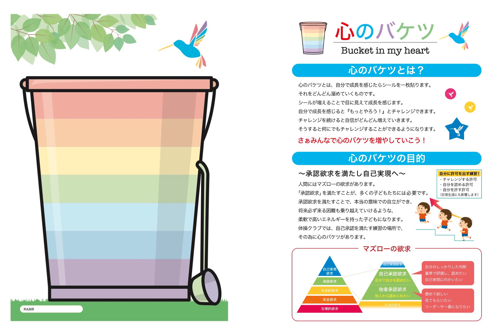 バケツの中にシールがどんどん貯まると自分の自信になり自己肯定感が高まります。