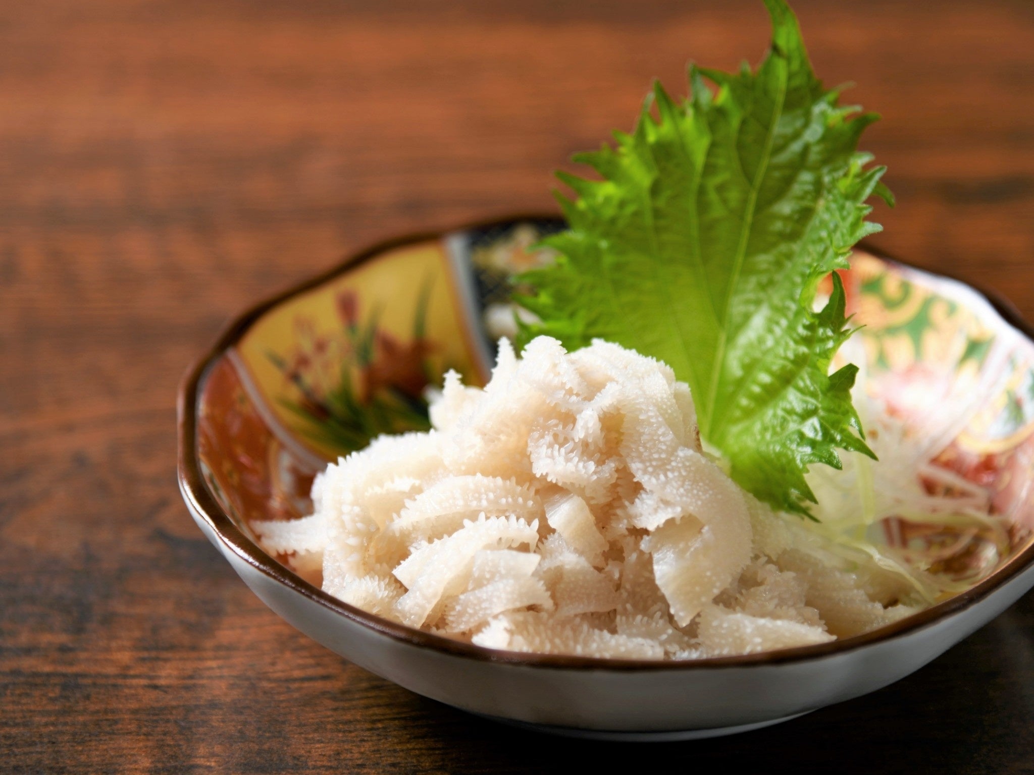 牛センマイに下拵えをして、白く癖の無い食感に仕上げました。お肉が焼けるまでのおつまみとしてお楽しみください。