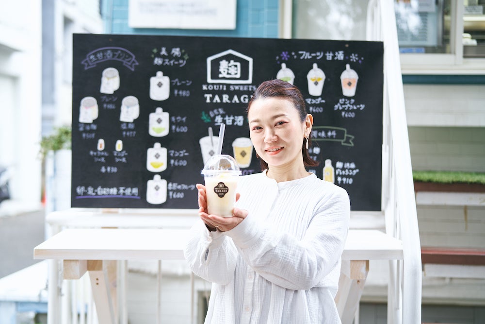 日本の食文化を支える麹を使い、腸内環境を整えることで美や健康を提供することをコンセプトにした店舗を展開する「こうじ家たらぎ」は、2019年に調布市仙川町に生甘酒と麹料理の専門店をオープン。2021年には、麹スイーツ専門店を渋谷区代々木上原にオープンさせた。同店は、麹由来の酵素を活かしたままの商品の提供にこだわり、麹を使ったスイーツや、生甘酒、麹調味料などの販売を行っている。