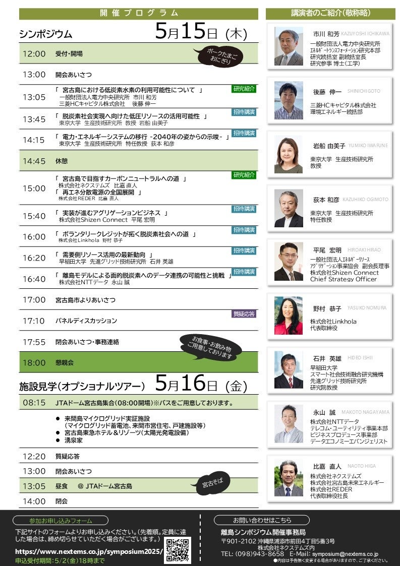 協賛:一般財団法人電力中央研究所、株式会社宮古島未来エネルギー、株式会社REDER