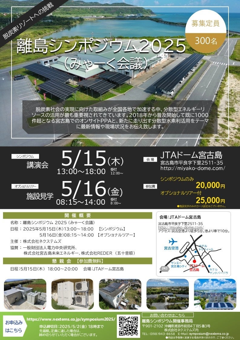 宮古島での取り組みや実証施設をご紹介する、「離島シンポジウム2025(みゃーく会議)」を下記の通り開催します。