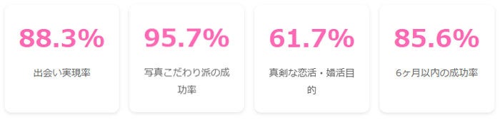 全年代で85%以上の高い成功率を維持しており、年齢に関係なく出会いのチャンスがあることが証明されました。