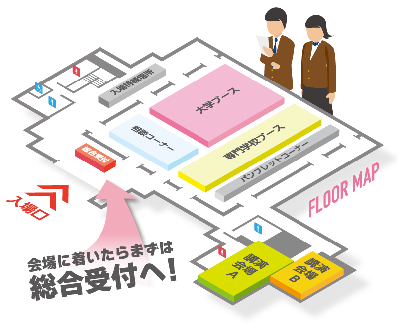 当日、お呼びしている大学、短期大学、専門学校の入学相談アドバイザーが一堂に会し進路や受験についての悩み、不安に感じていること、受験当日までの心構えや入学してからの学園生活など、様々な角度から色々と適切なアドバイスをしてくれる相談会です。高校卒業後、その先のビジョンをより明確にするためにも、また保護者の皆様や現在通われている高校の担任の先生、進路の先生と共有する意味でも内容の濃い場となっています。高校生の皆様は勿論、保護者の皆様、高校の先生方にも是非ご参加いただきたいイベントです。