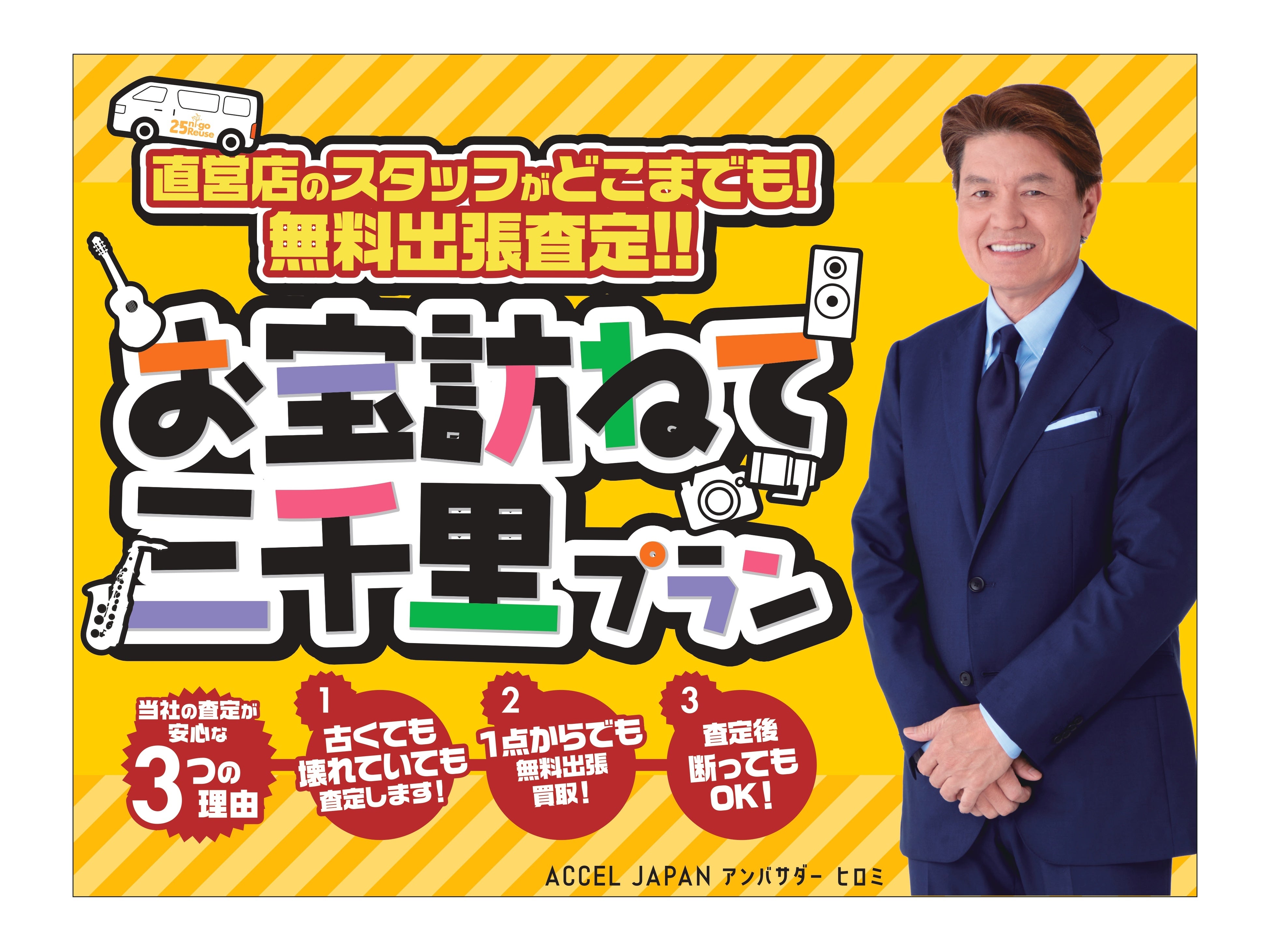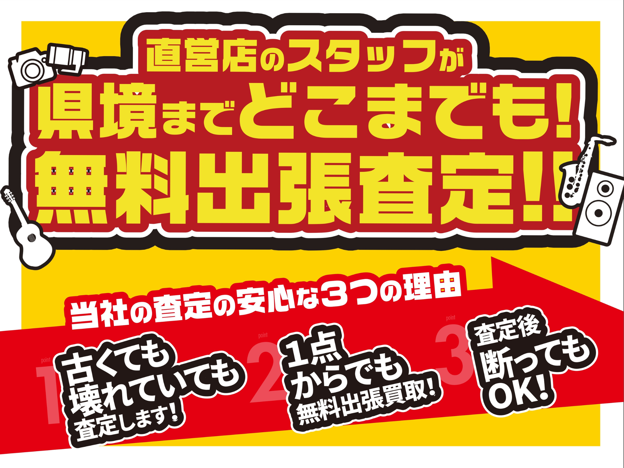 お宝訪ねて三千里プランは、オーディオ・楽器・カメラの買取を希望される方のご自宅に出張し、無料査定を行うサービスです。対象商品の買取について問い合わせをいただいた場合、各拠点の所在地(※1)からの距離や買取点数、現在の商品価値に関わらず、ご自宅まで伺い無料査定を行います。