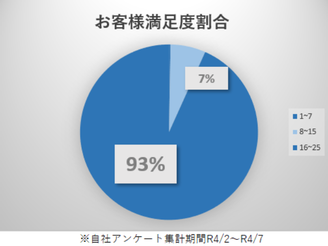 備考:査定後お客様に自社アンケートのご協力をしていただいております。各項目5段階で評価を頂き集計結果を数値化しております。