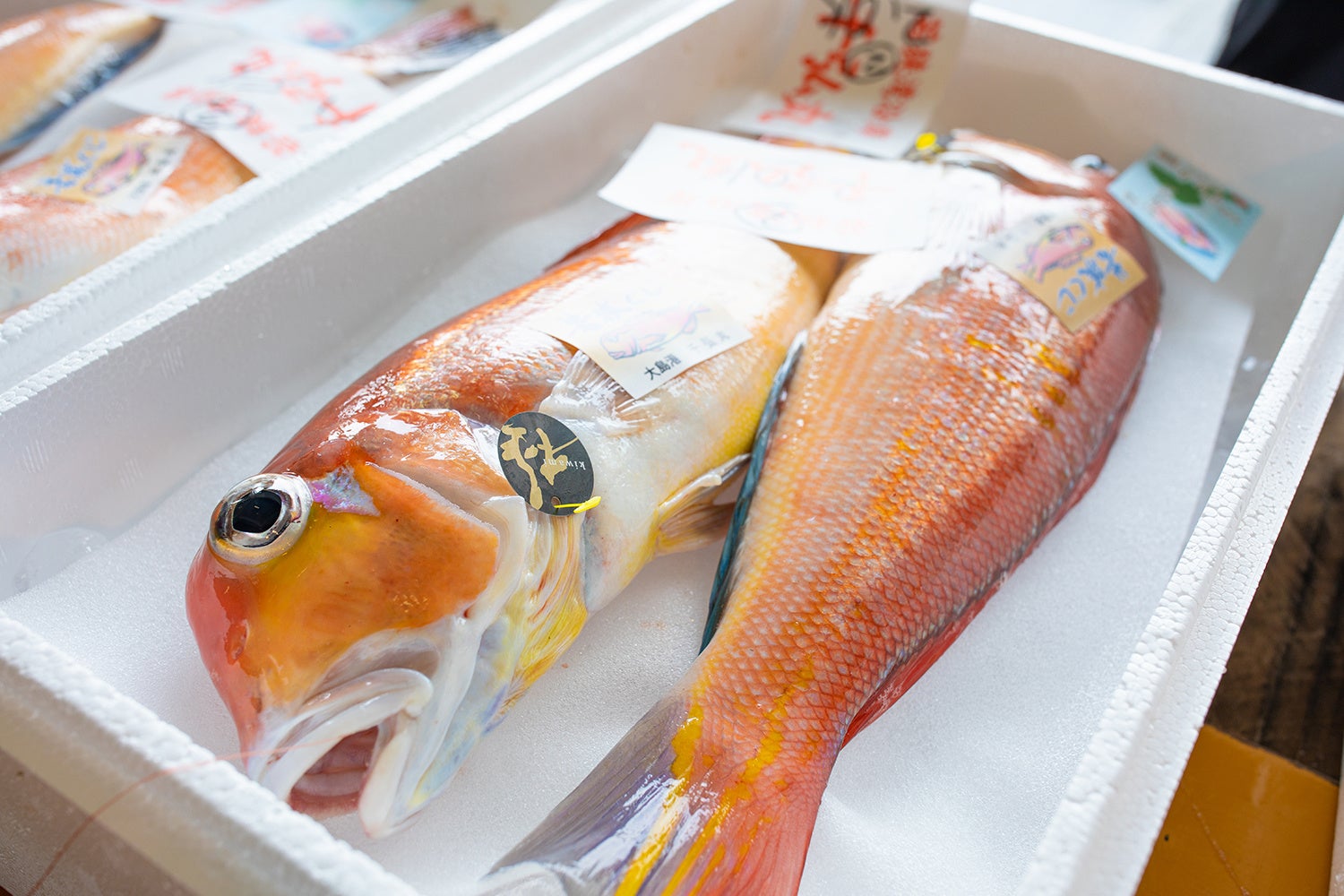 若狭湾で獲れるアカアマダイは、古来から最高級食材として京の都に運ばれていました。現在では、若狭湾で獲れるアカアマダイの中でも、漁獲方法や大きさ・姿/形・鮮度管理などの厳しい基準を満たした個体だけを「若狭ぐじ」と呼び、水揚げ港・船名が入ったラベルと共に出荷されていきます。