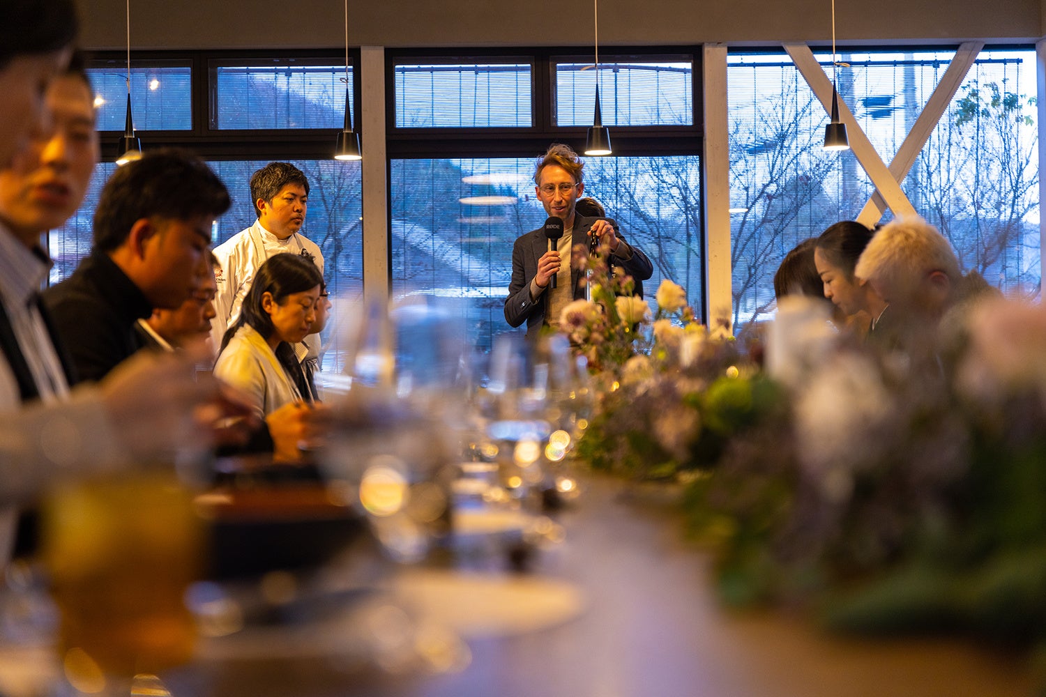 また、本映像を実現するにあたっては、比嘉氏/ジャスティン氏が福井県の生産者様を招いたONE DAYレストランを開催。5食材を活用したオリジナルメニューとさかほまれ地酒をペアリングした特別なコースを振る舞い、生産者様との交流を行いました。