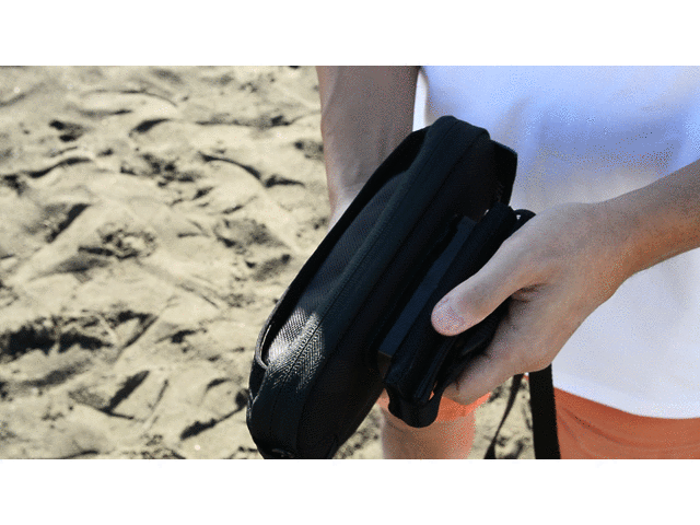 ツイストアクションで一瞬で外せ、装着するときは近づけるだけで吸い付くように、カシャっと気持ち良い音と共に装着完了。元々は自転車のドリンクボトル用として開発されたこの FIDLOC社のツイストアクションのマグネットバックルを 3HT が初めてボディバッグに採用しました。