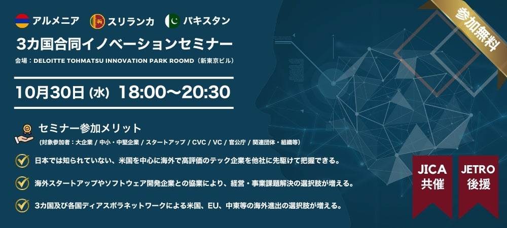【JICA共催 | JETRO後援】アルメニア・スリランカ・パキスタン3カ国合同「第2回イノベーションセミナー」開催のご案内(10月30日)