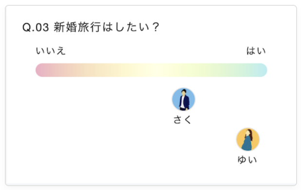 パートナーの回答も完了したら、二人の答えが表示されます。