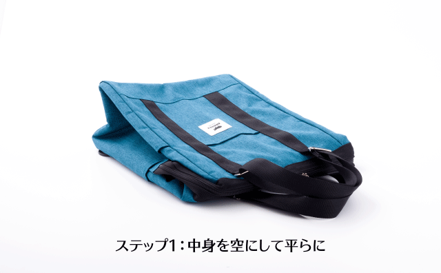 開口部にワイヤーが入っているので、使い終わった後は簡単に折りたためて、収納が楽ちん。ONとOFFのギャップが魅力。