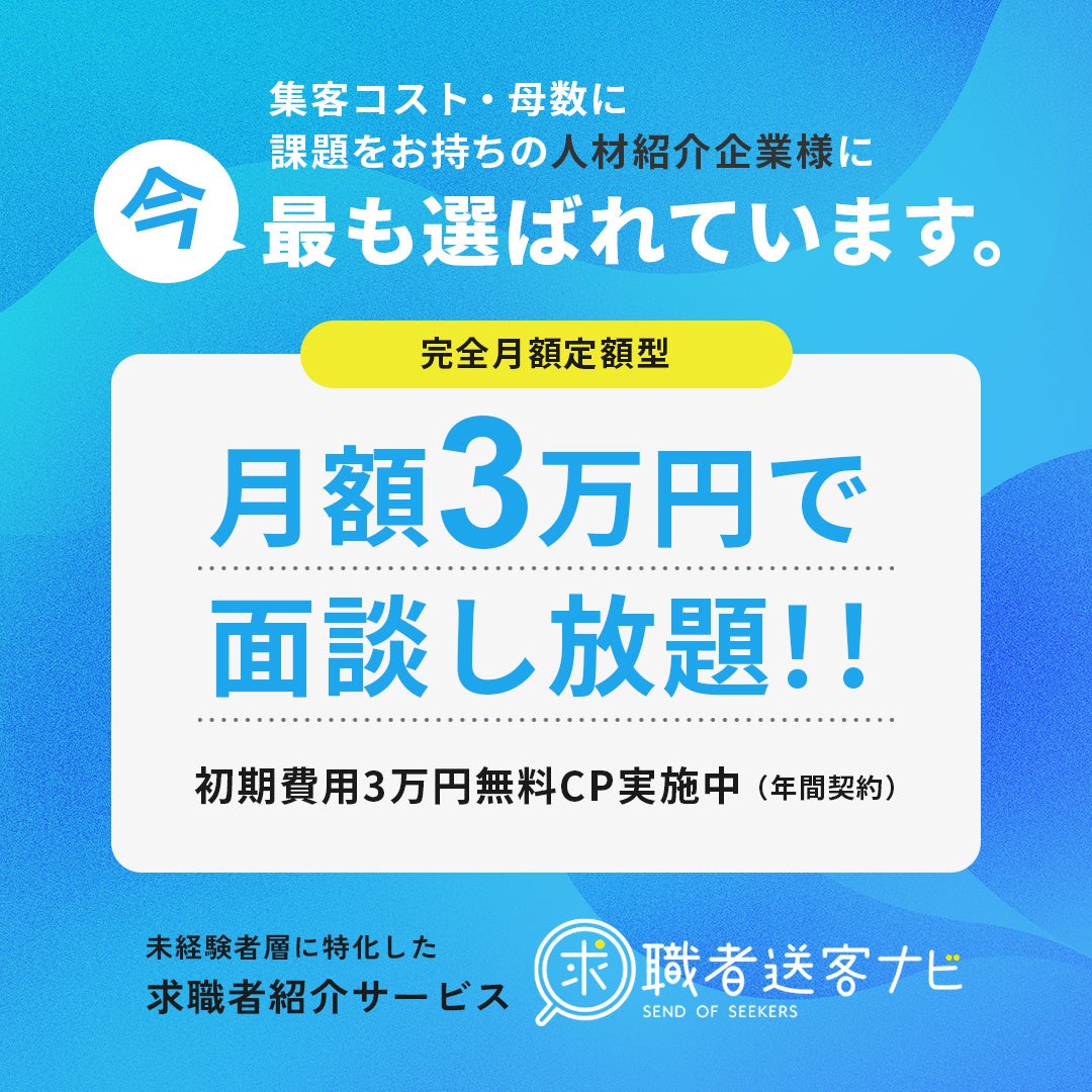 また、人材紹介会社様には継続的な求職者の母集団形成と圧倒的コストパフォーマンスを発揮してもらうために定額制で面談し放題の送客サービスになっております。