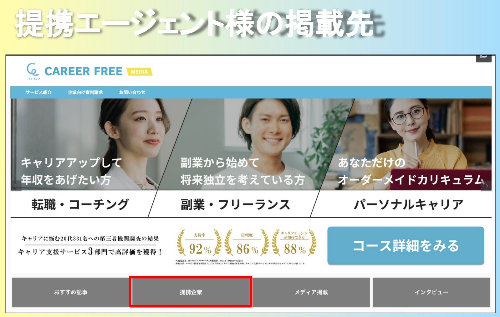 求職者送客ナビを利用してくださる人材紹介会社様に関しては弊社オウンドメディア(約1.5〜2万PV)にてご紹介とPRをさせていただいております。