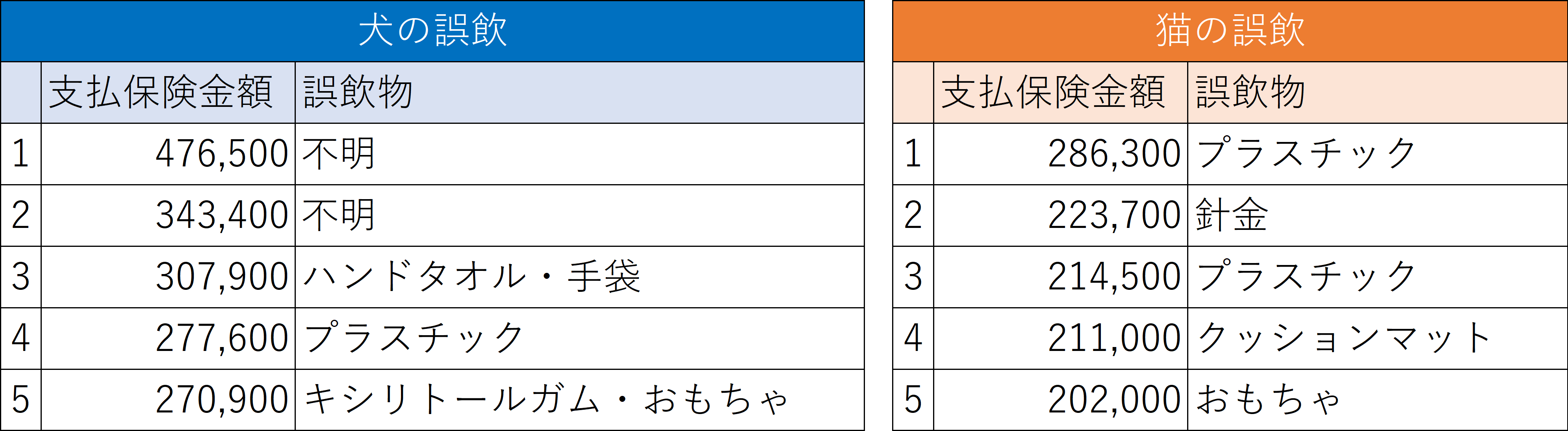 ●ペットメディカルサポートのペット保険「PS保険」での誤飲による保険高額支払い事例(2019年度)を紹介します。