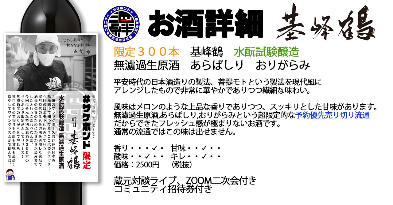 ・購入者は、解禁日当日6/4に夜8時から開催される蔵元とのYouTubeライブ、そしてその後のオンライン二次会でより深い話をしたり全国の酒友とつながれるオンライン二次会とコミュニティに参加できる。