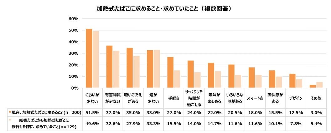 ■Q7. 現在加熱式たばこに求めることをお答えください。また、紙巻たばこから加熱式たばこに移行した際に求めていたことをお答えください。(複数回答)