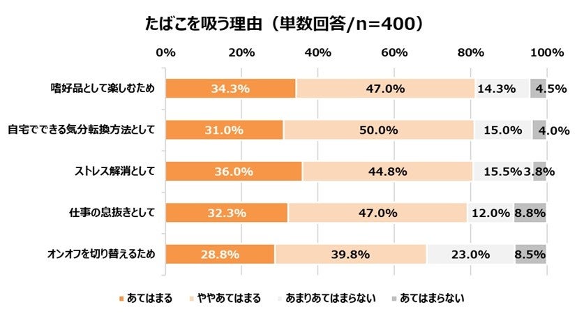 ■Q3. あなたがたばこを吸う理由について、それぞれどの程度あてはまるかお答えください。(単数回答)【n=400】