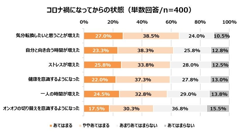 ~コロナ禍で「気分転換したい」「1人の時間が増えた」との声が半数超え~