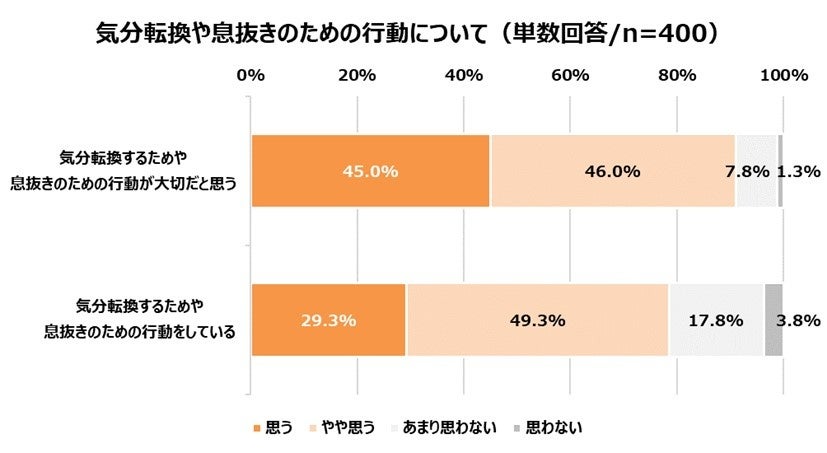 ■Q2. あなたの、気分転換や息抜きのための行動についてそれぞれお答えください。(単数回答)【n=400】