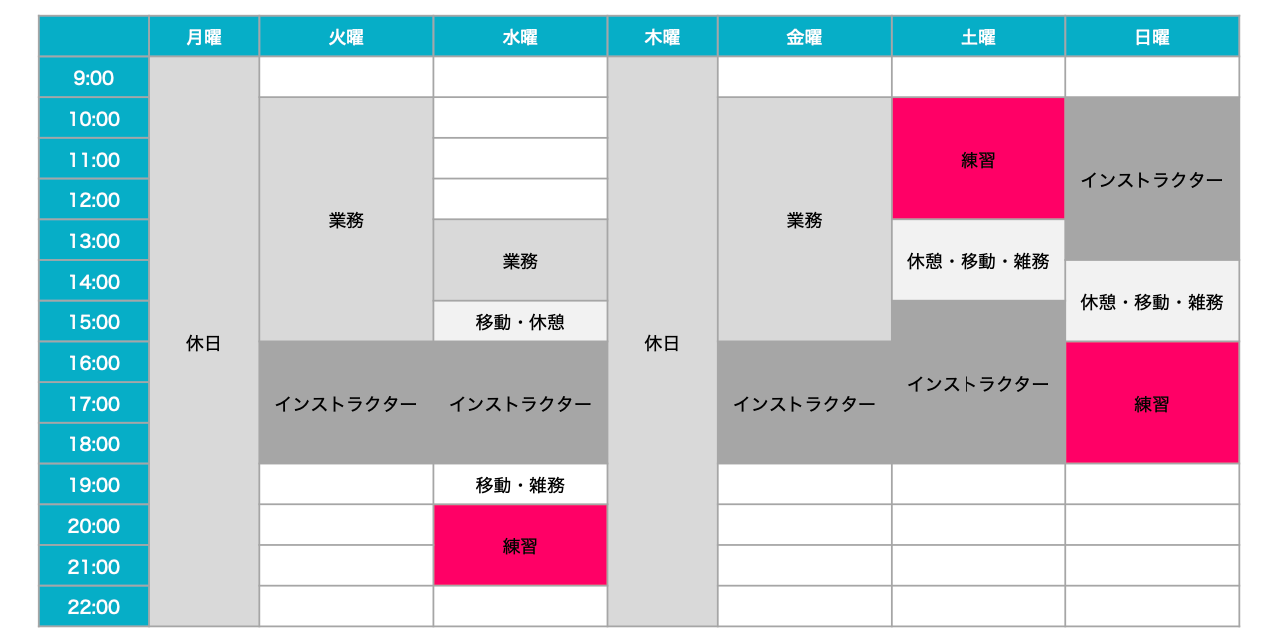※インストラクター業務は、レッスン数は増減がある