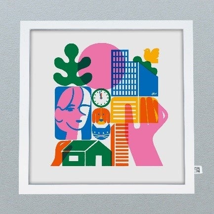 今回インテリアにできるアイテムとのことで私が描いたイラストは少し不安なことがある日々に、ほっと安心できるような明るいイラストに仕上げています。