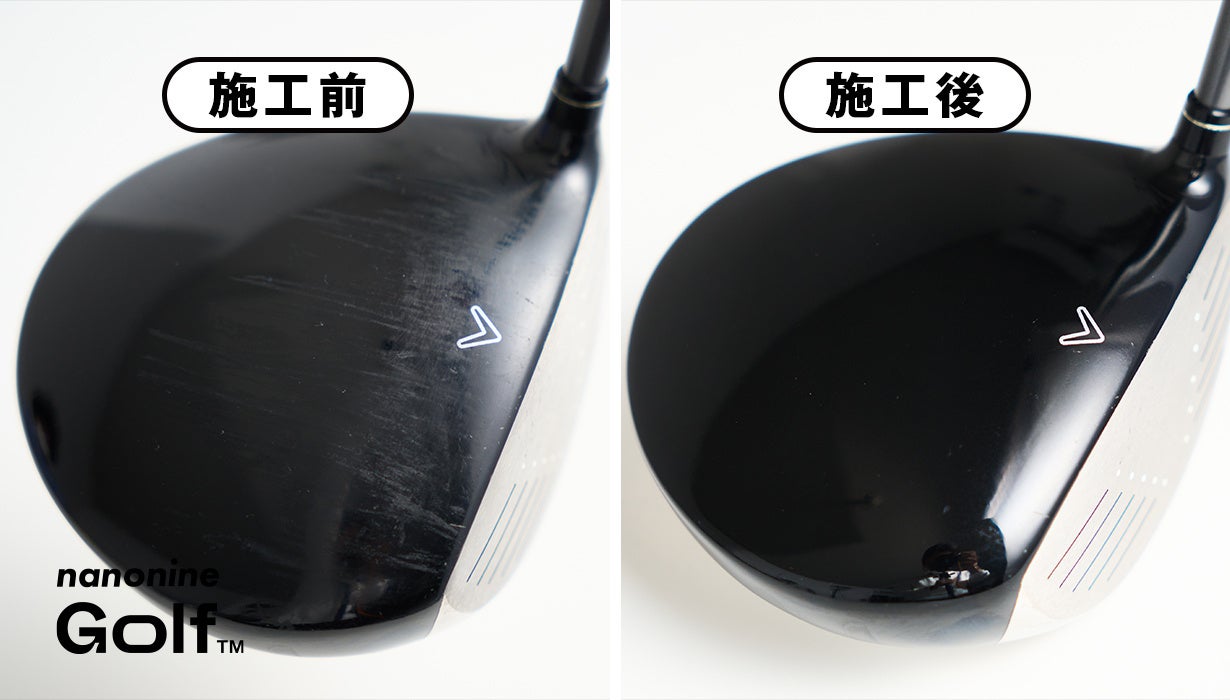 また、コーティングは基材(施工する面)にしっかり付着し、基材を硬さで守る必要があり、基材に合わせた設計をしなければ十分な性能が見込めません。スマホ用や車用などのガラスコーティングを流用ではなく、専用に設計された製品であることが大切です。ナノナインのガラスコーティングは、すでについている傷に入り込んで埋め、さらに表面を平滑にするために特別に設計された流動性や付着性を持っています。新しくクラブを購入する際だけでなく、今お使いの大切なクラブにもばっちりご使用することができて、輝きを取り戻すことが可能です。