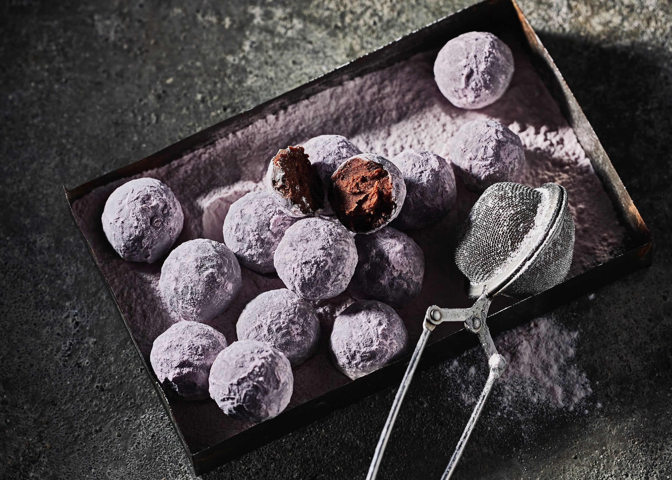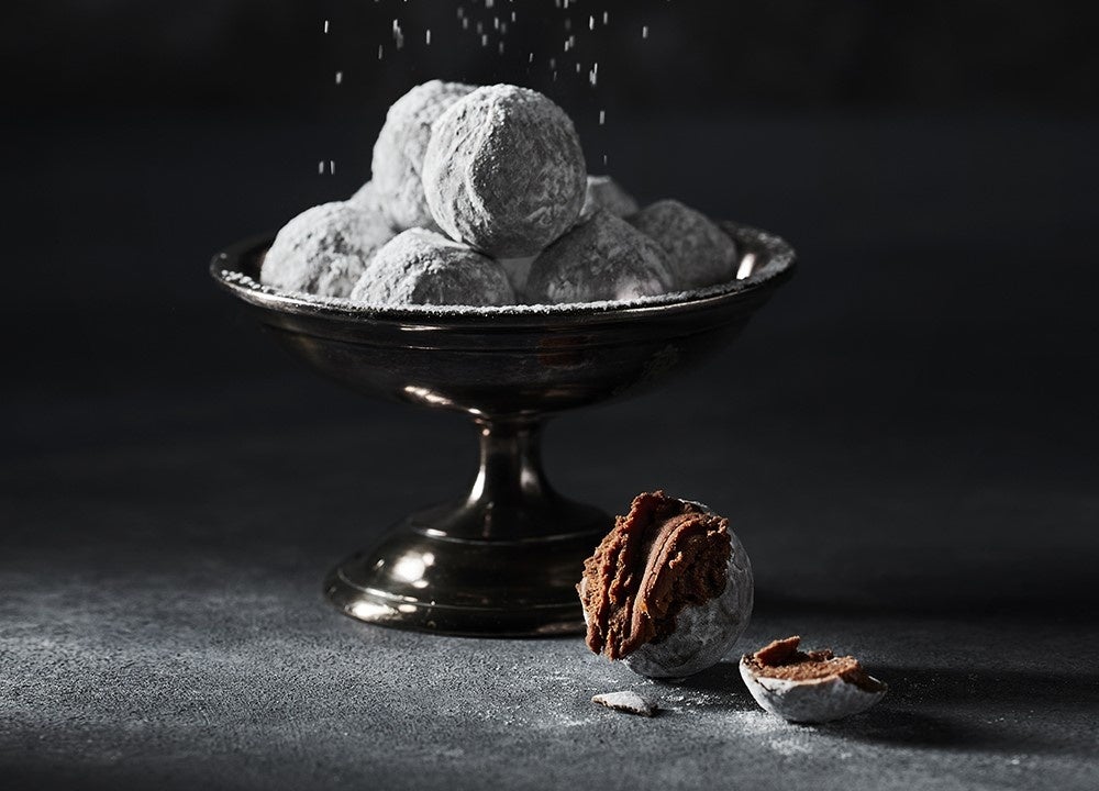 なめらかな口どけから立ち上がるグレープフルーツやペパーミントを思わせる爽やかなシャンパンの果実味と酸味、シャンパンにより引き立つ香り高いカカオの風味をお楽しみ頂けるシャンパン・トリュフです。