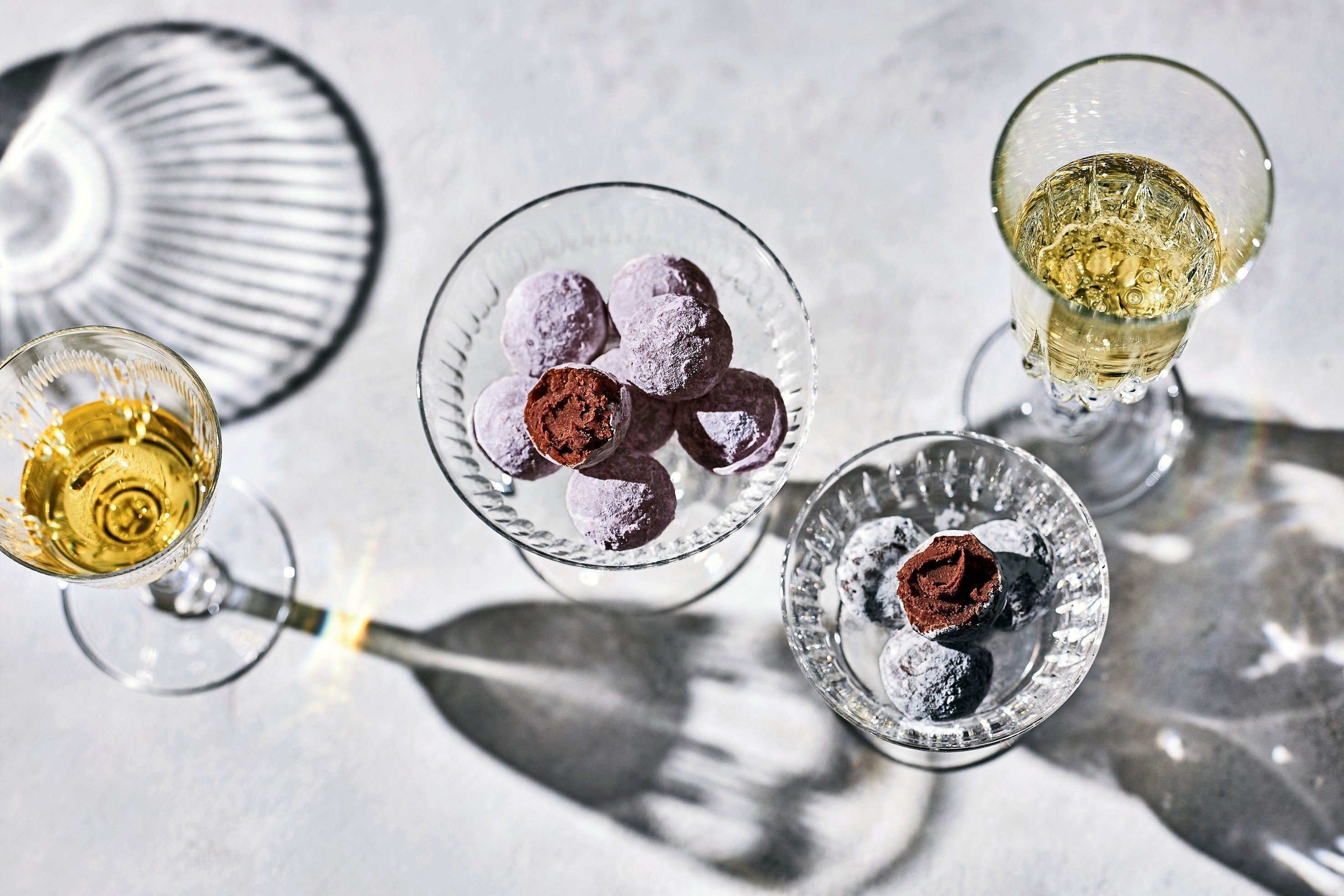 今年はフランスでつくられるシャンパーニュ地方でつくられるシャンパンと貴腐ワインでおつくりする2種類のトリュフをご用意しました。