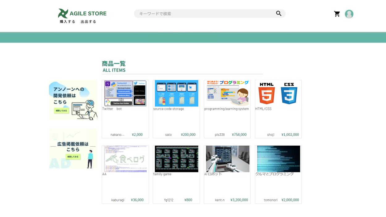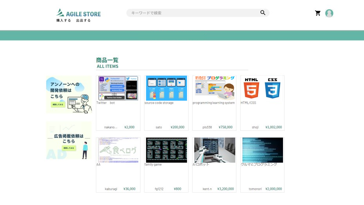 保有されている掲載可能なソースコードをAgileStoreに掲載していただく事で、お客様がご購入される度に貴社へ価格の80%の金額が売上としてお支払いされます。