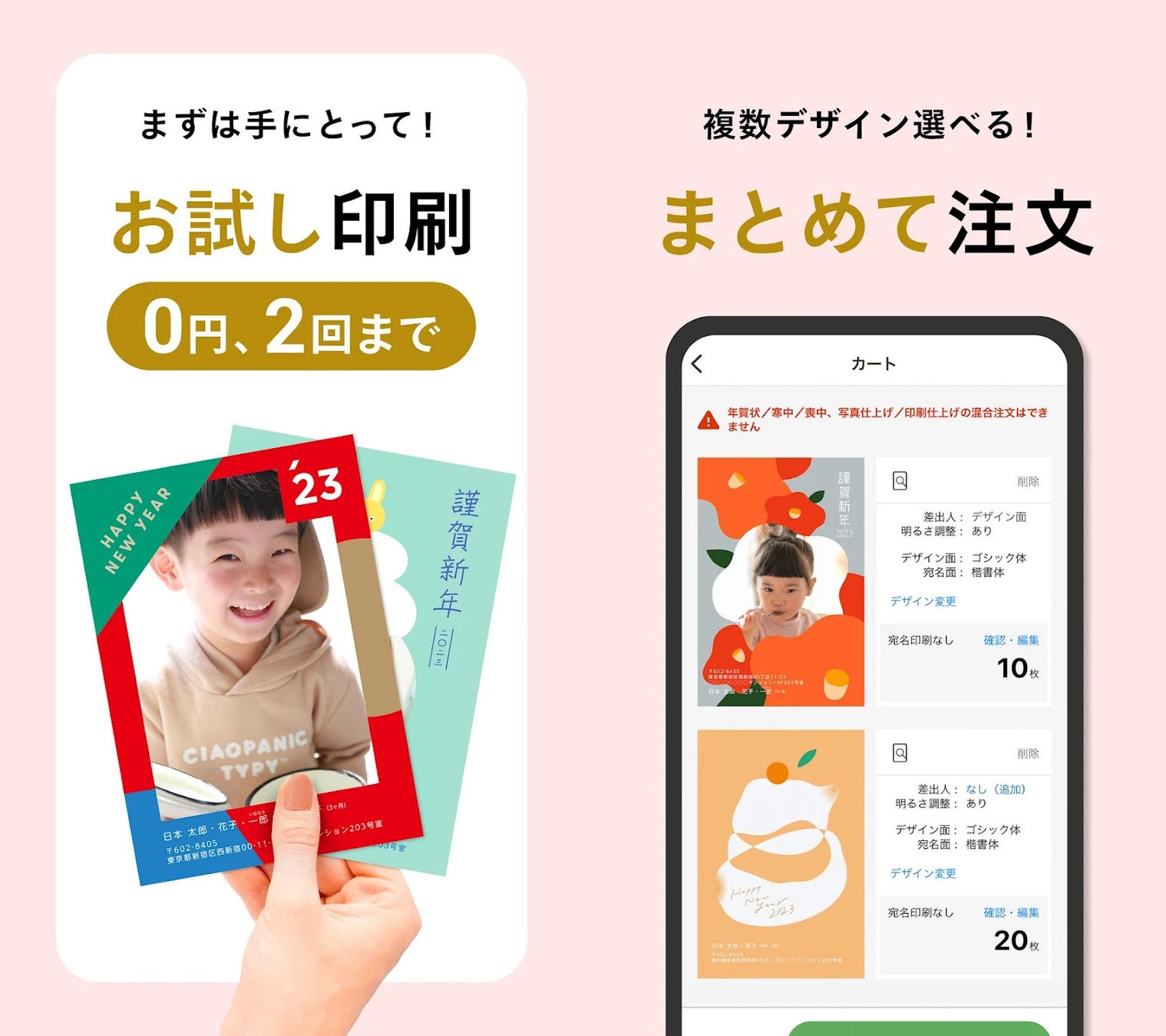 ※お試し印刷は複数デザインを同時にご注文いただけません。その他同時注文の対象外となるものもございます。詳細は公式サイトをご確認下さい。