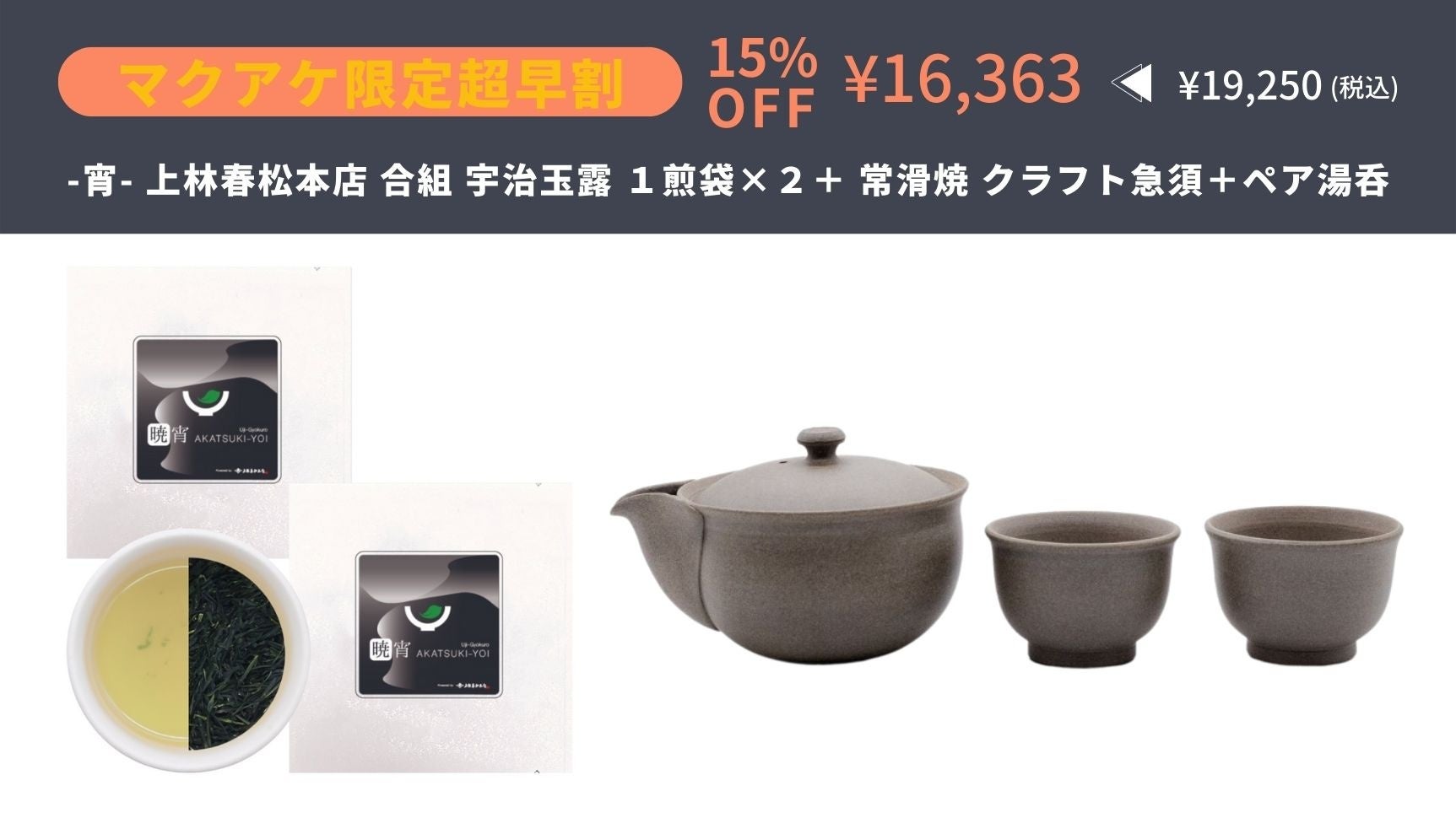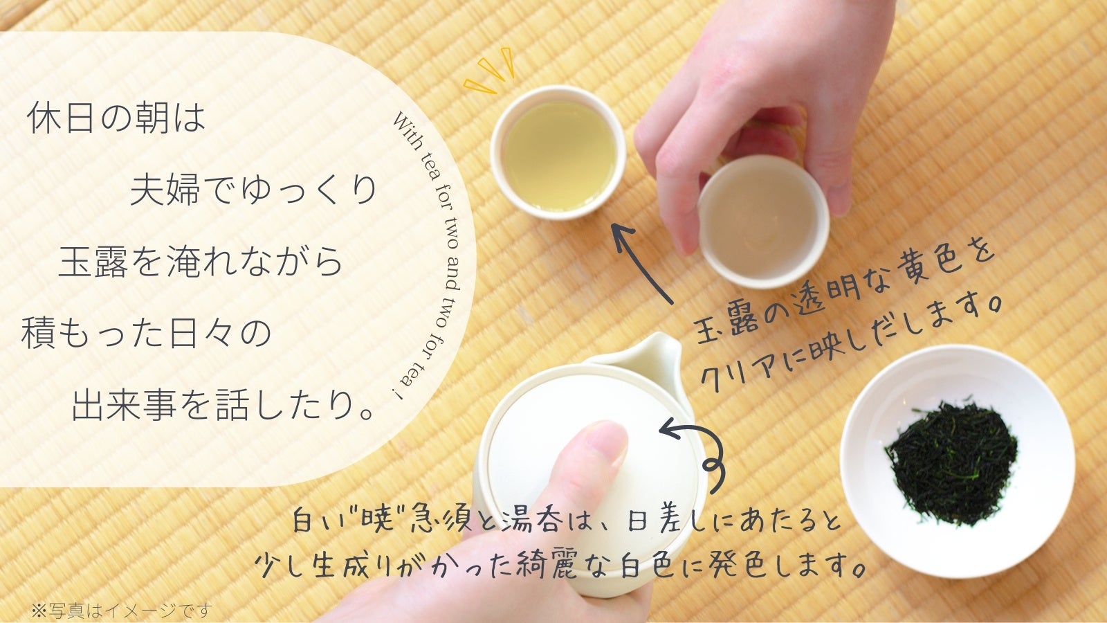 伝統と工芸のコラボ。自宅に高級旅館のほっとするひとときを。誰でも手軽に、本当に美味しい宇治玉露を淹れられる「暁宵」常滑焼の急須と湯呑、玉露お茶セットを開発