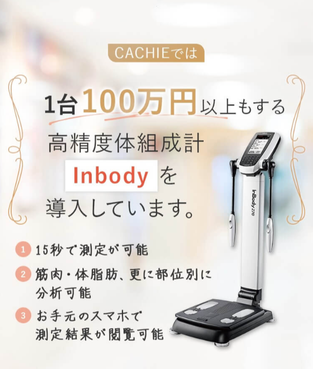 体成分分析装置「InBody」で、体重・筋肉量・栄養評価・部位別採寸・部位別体脂肪率などの詳細な分析項目を無料で測定可能です。