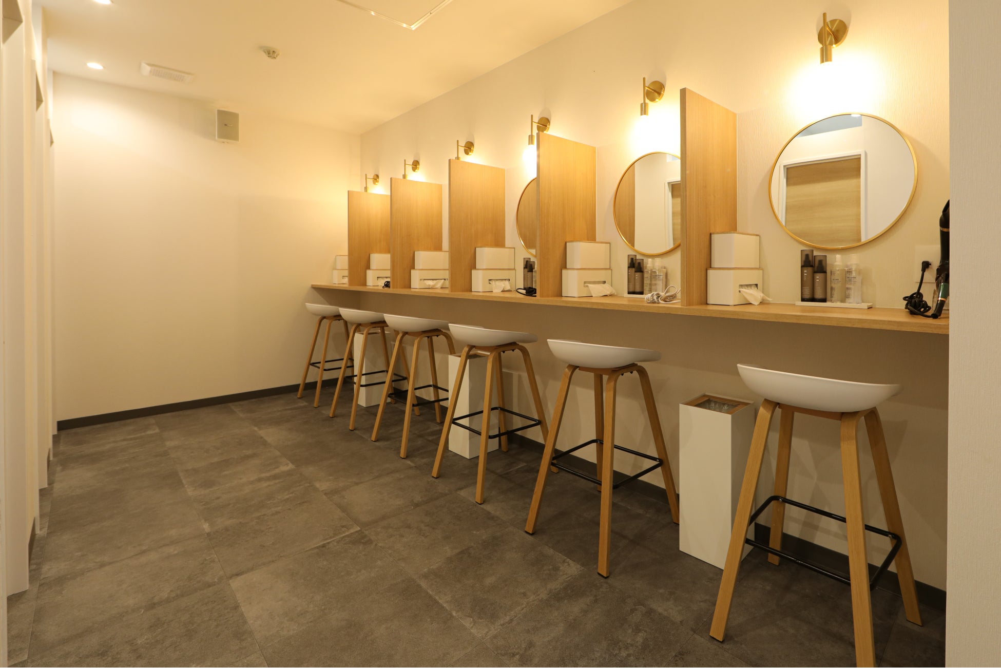 1席ずつに間仕切りを設けた設計で、隣の人の目を気にすることなく、落ち着いてスキンケア・ヘアケアできます。