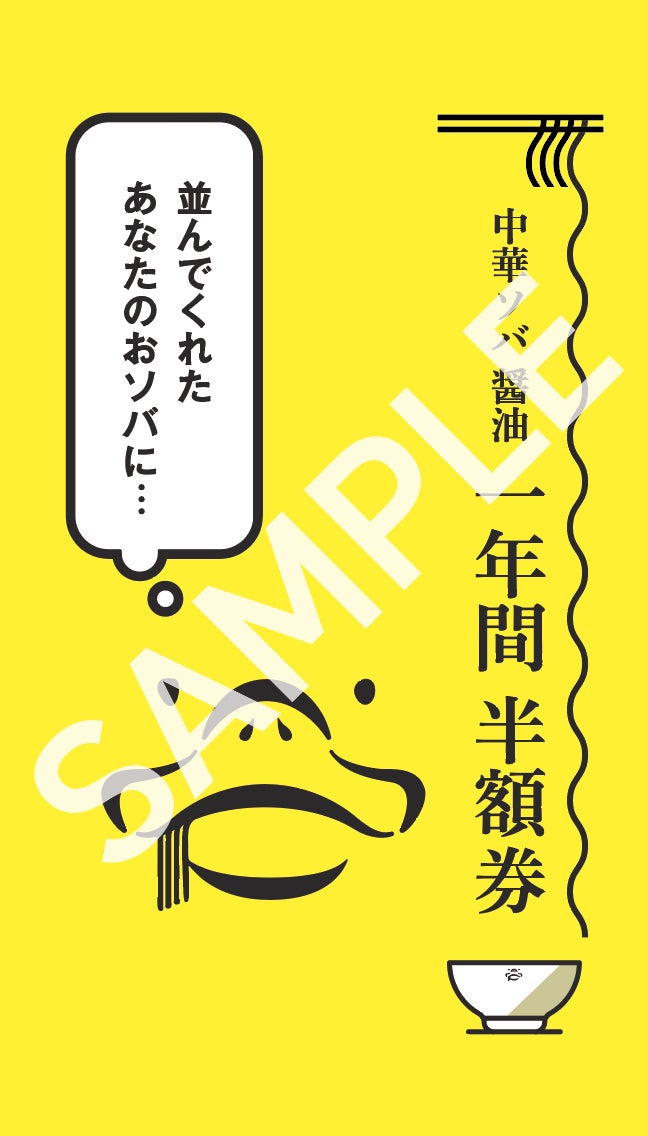 - みんなのらぁ麺 阿飛流 中華ソバ 醤油一年間半額券プレゼント