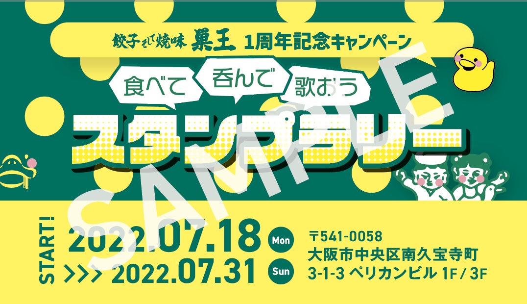 「餃子そして焼味 巣王」ホンマにおおきに!祝1周年キャンペーン2022年7月18日(月・祝)〜7月31日(日)