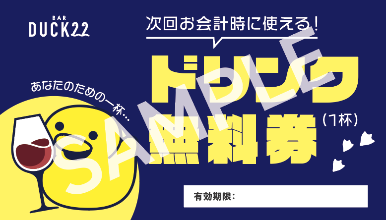 みんなのらぁ麺 阿飛流、餃子そして焼味 巣王、BAR DUCK22各店ご来店ごとに、他2店舗のサービス券をお渡しします。