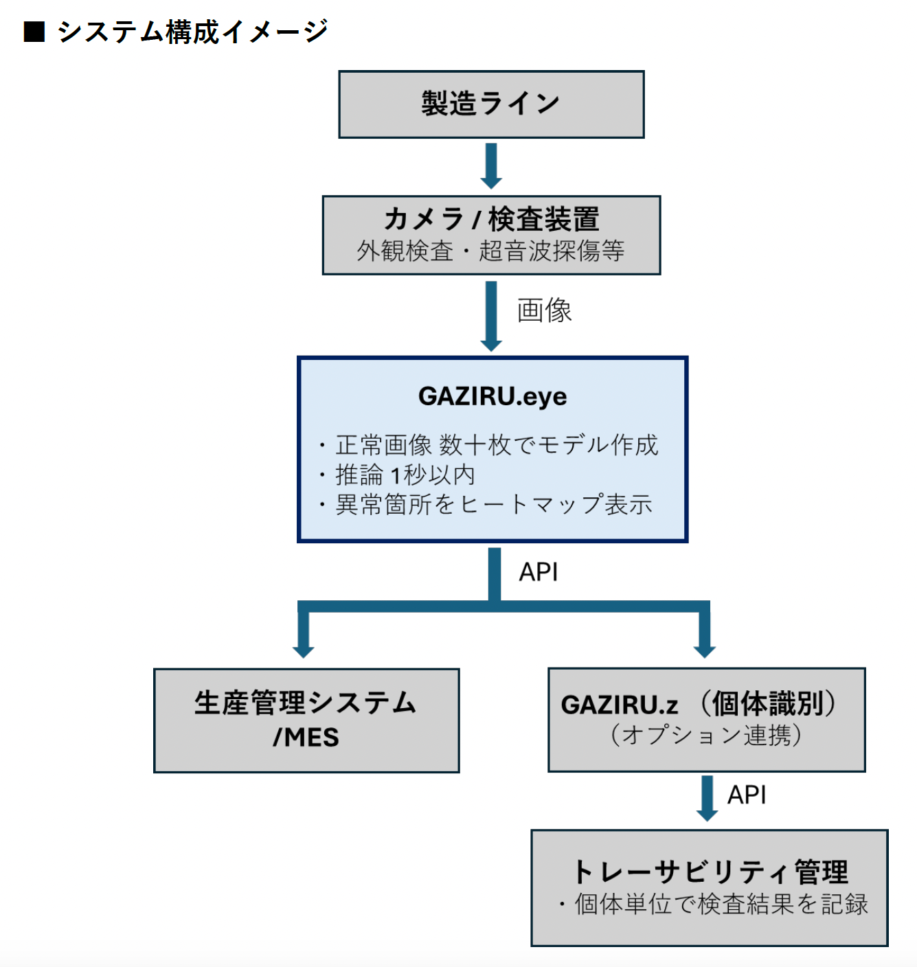既存システムとの連携:API提供により既存の生産管理システムや検査装置との統合が容易