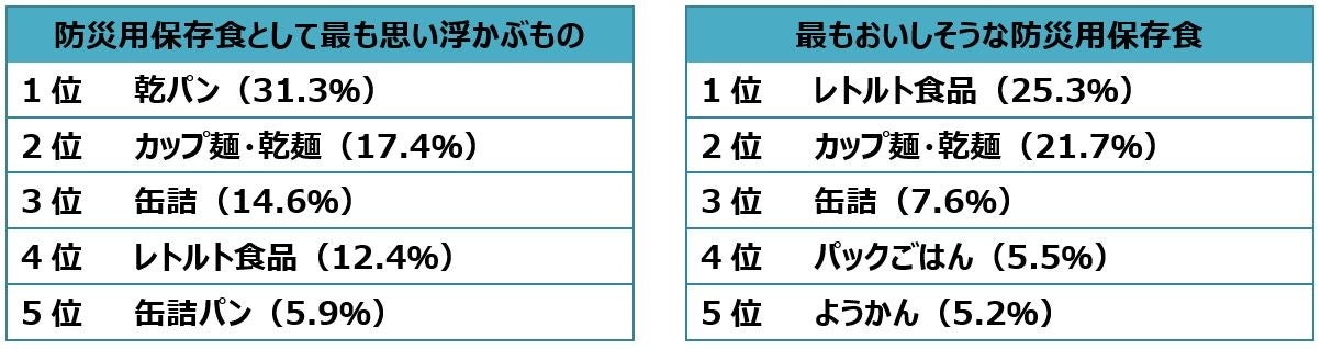 防災用の保存食といえば? “保存食=乾パン”というイメージが根強い結果に。