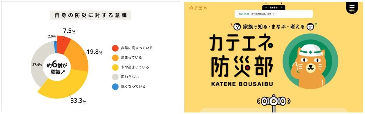 8月28日(水)より、防災ポータルサイト「カテエネ防災部!」を開設します。防災への取り組みを部活動として発信。部のモットーは「むずかしくない、たのしい防災」。カテエネコを「部長」に、活動に共感し、ともに取り組んでいただくカテエネ会員さんを「部員」に災害に強い中部エリアをつくっていきます。