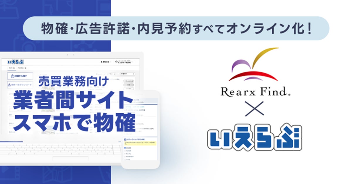 「人と不動産のかけ橋に」を企業理念とし、中古マンションの仕入れ営業・商品企画・販売営業を行う株式会社リアークスファインド(本社:東京都新宿区、代表取締役:大人慶太、以下「リアークスファインド」https://www.rearx-find.co.jp/ )は、株式会社いえらぶGROUP(本社:東京都新宿区、代表取締役:岩名泰介、以下「いえらぶGROUP」)が提供する売買版「業者間サイト」および「スマホで物確」の導入を開始いたしました。