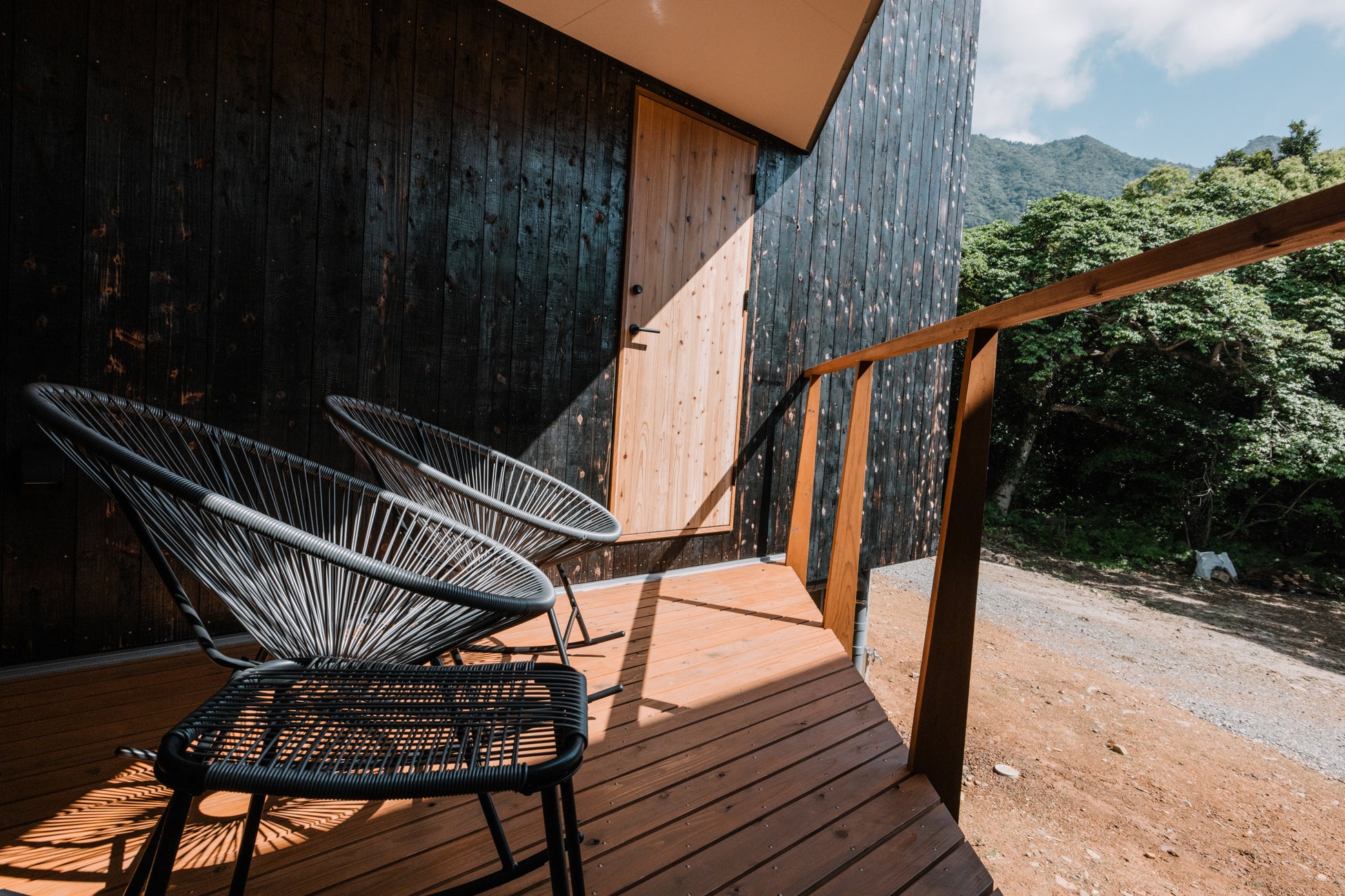 Årc yakushimaの建築には、屋久島地杉や焼杉の外壁など、屋久島や鹿児島産の素材を活用しています。オーシャンビューのお部屋からは、冬にはクジラを見ることもでき、フォレストビューのお部屋からは、緑の山々や、隣接する川に棲むホタルを眺めることができ、屋久島の豊かな自然を感じられます。また、都会では見られない感動的な星空を眺めることができます。