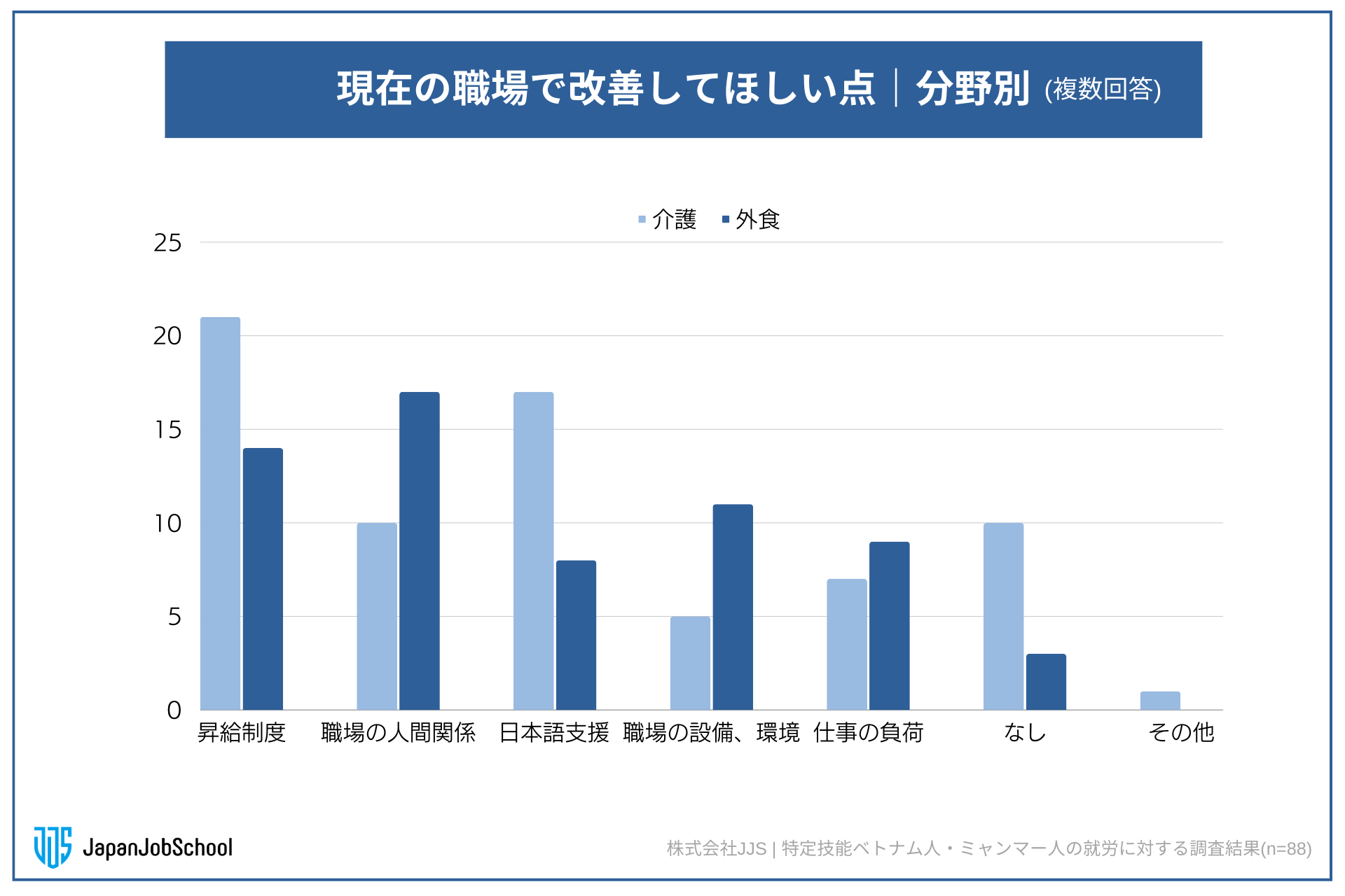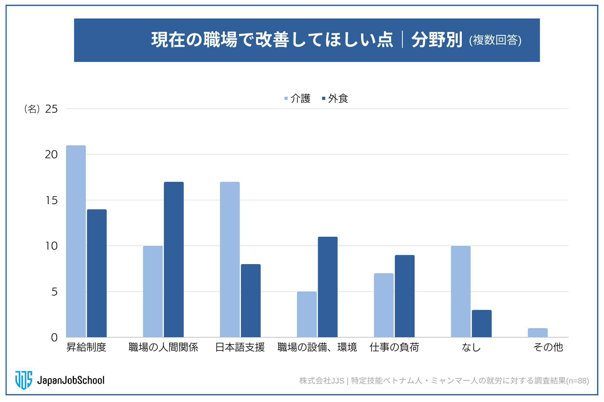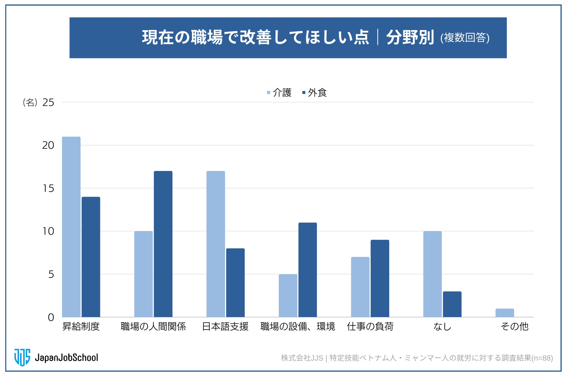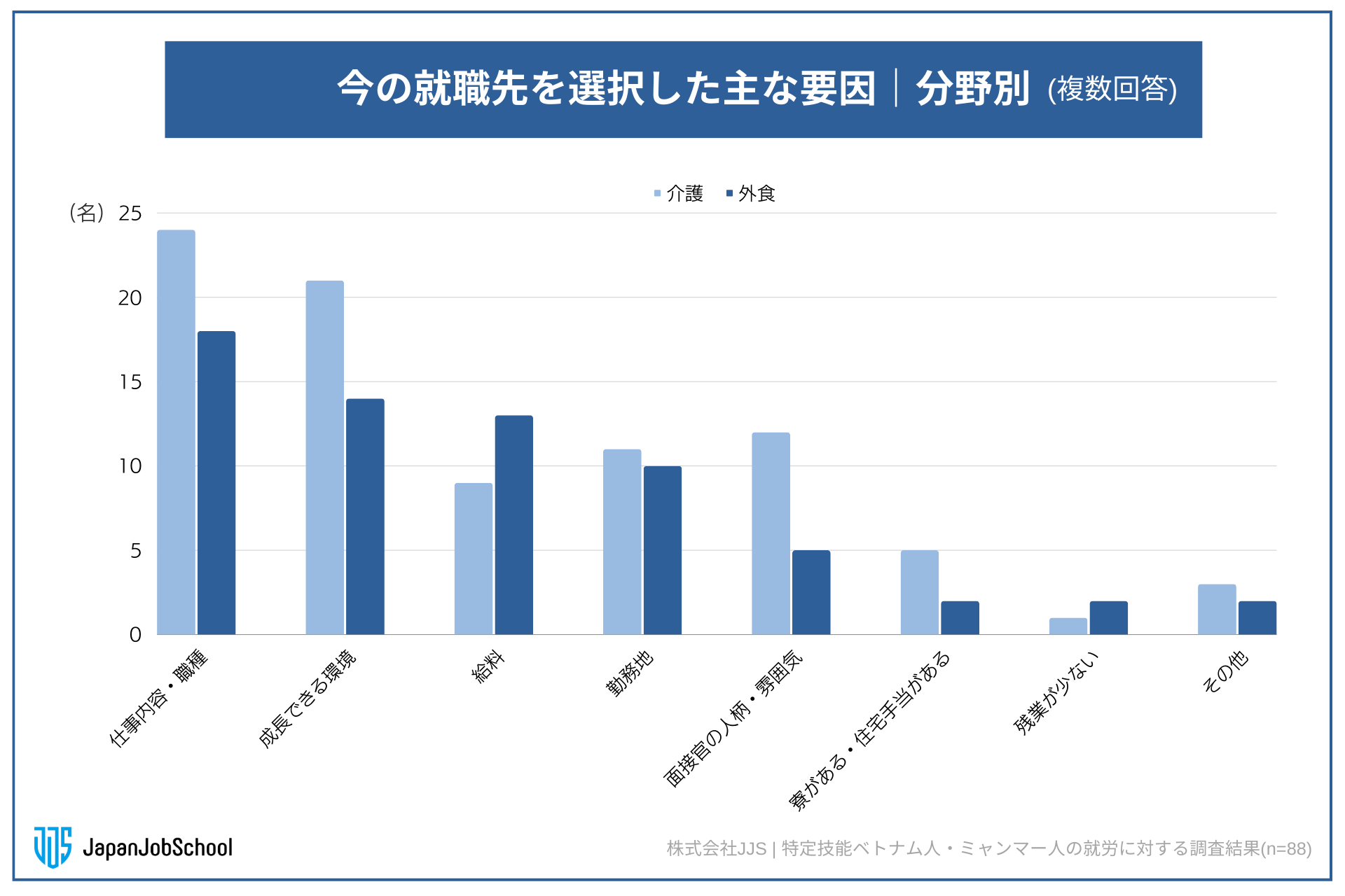 特定技能介護、外食の分野別に見ると(n=88)、