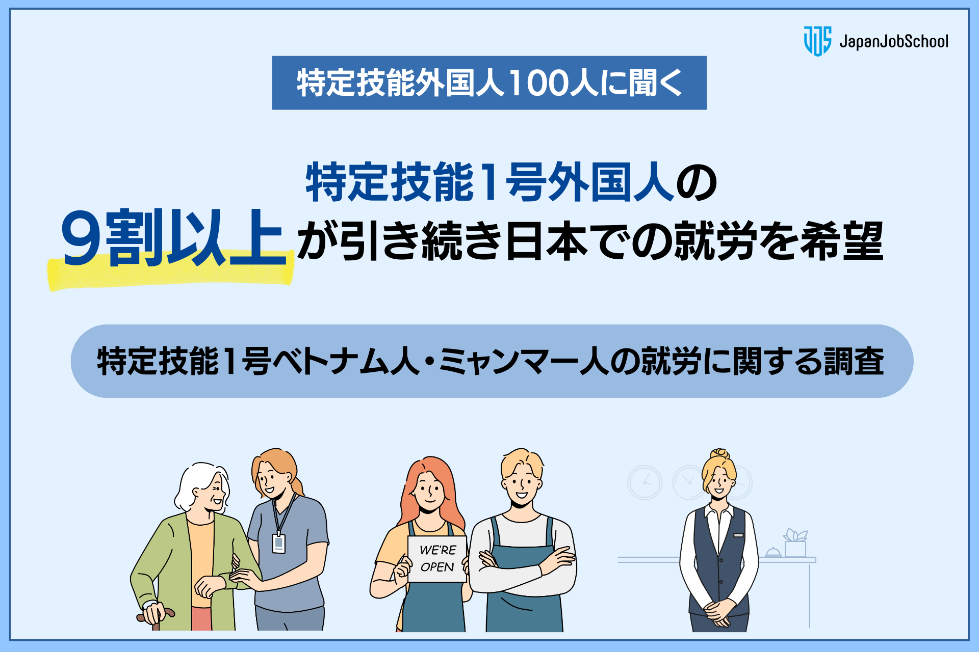 特定技能1号外国人の9割以上が引き続き日本での就労を希望。「特定技能1号ベトナム人・ミャンマー人の就労に関する調査結果」