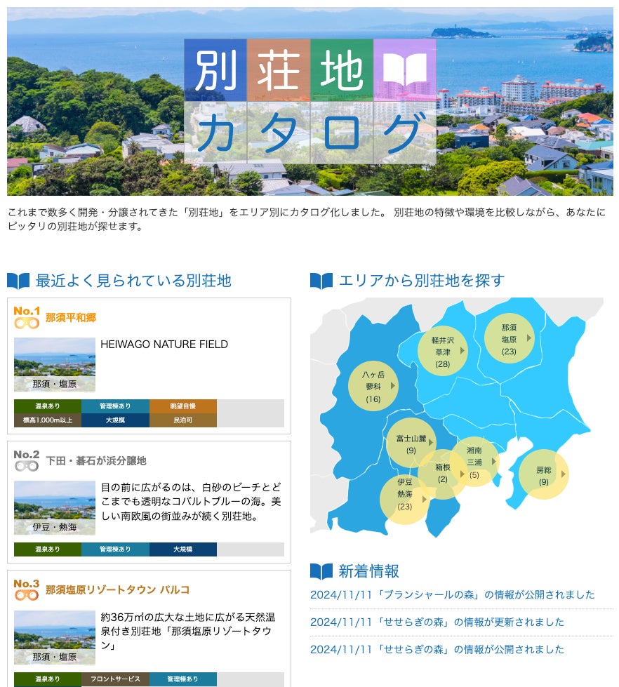 唯一の別荘専門不動産ポータルサイト「別荘リゾートネット」が新機能「別荘地カタログ」OPEN。関東甲信越で115の別荘地を掲載!