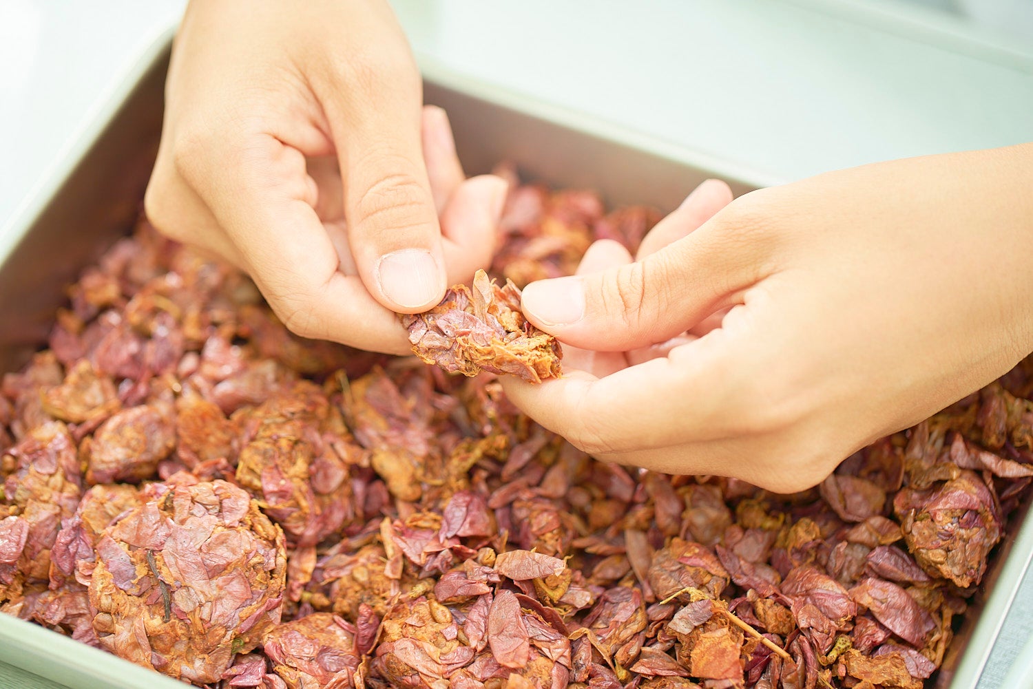 小売店が仕入れた量のおよそ30〜40%の花が廃棄されています。この廃棄されてしまう花を「ロスフラワー®」と名付け、ロスフラワーを使ったクラフトジンを開発。数日で散ってしまう生命の短い切花を、賞味期限のない蒸留酒に生まれ変わらせました。出来上がった蒸留酒はまるで植物園や花屋にいるような心地よい香りが特徴です。