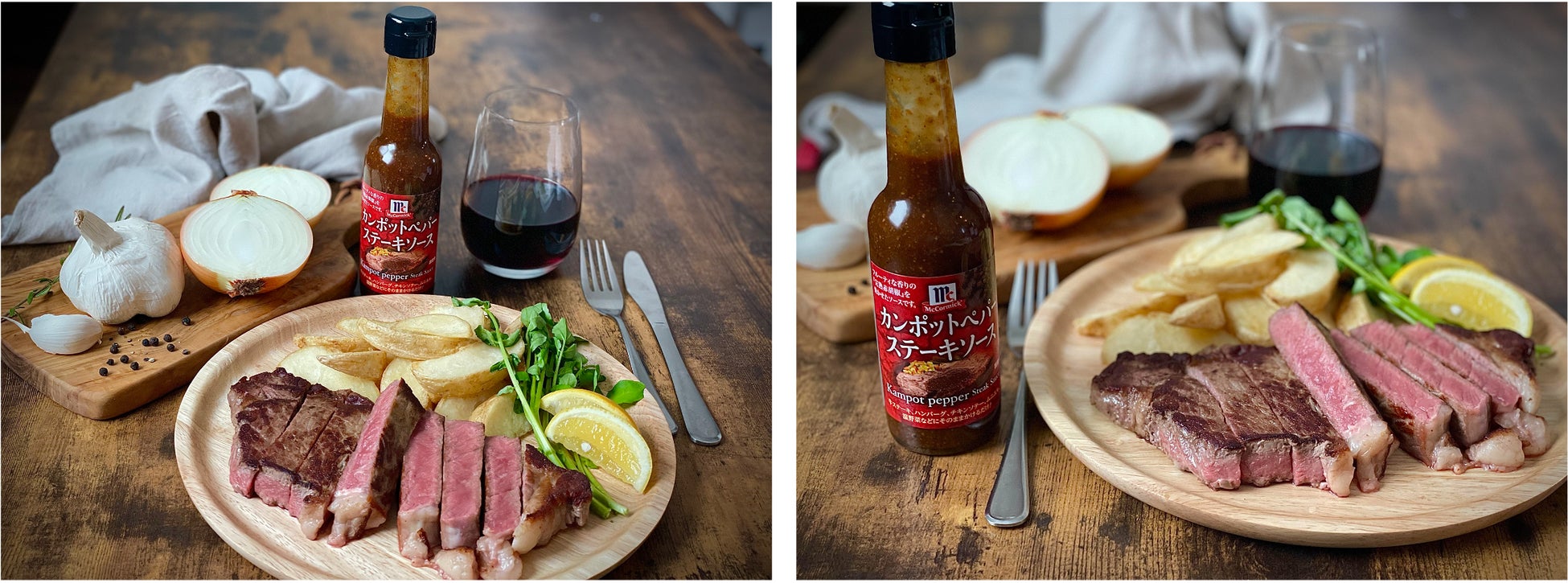 『カンポットペパーステーキソース』は、希少な完熟カンポットペパーの味わいを最大限に活かし、さらにオニオンやガーリックなどで香り高く仕上げました。ステーキやチキン、ハンバーグなどの肉料理にはもちろん、ムニエルや魚介、温野菜など、どんな料理にも相性が良く、手軽に芳醇な旨み、マイルドな辛さをプラスし料理を引き立てます。